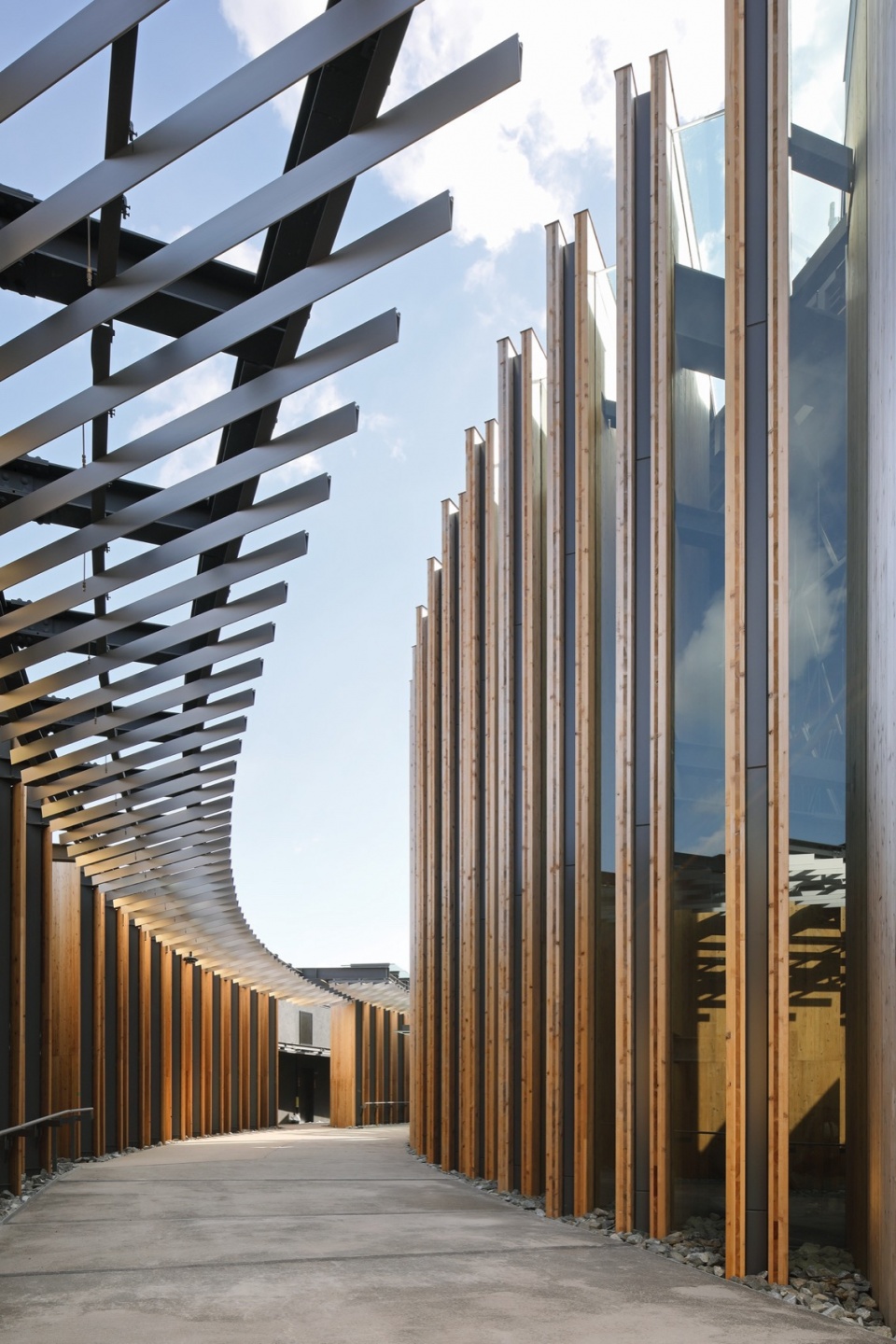 Outdoor Corridor Cladding Panels: 233 sets, Sugi (Japanese cedar) sourced from Kagoshima Prefecture, approx. 170 m³