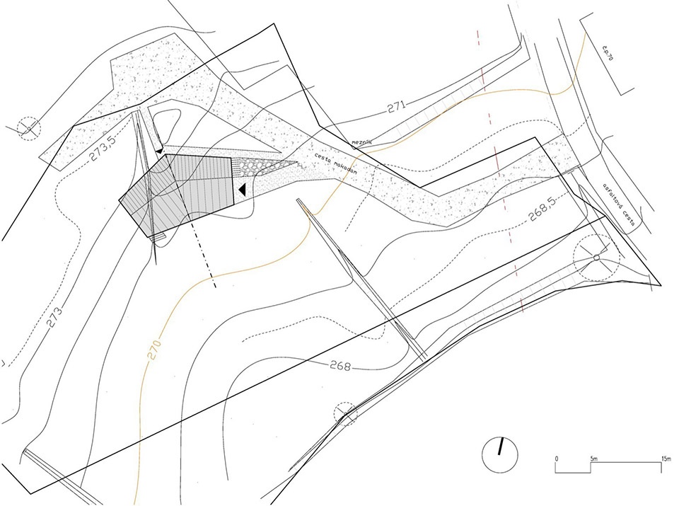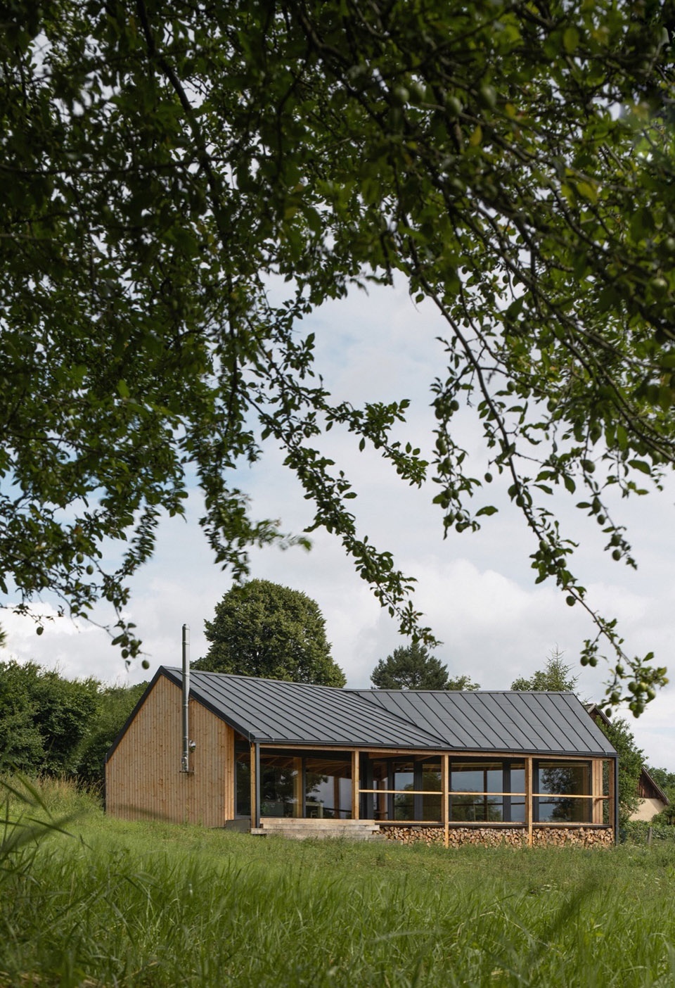 项目基地位于Hrubá Skála村中心以南的缓坡地带,周围散布着历史建筑与现代住宅,共同构成多元的建筑风貌。设计从当地传统建筑中汲取灵感,注重住宅与自然及文化环境的和谐衔接。
