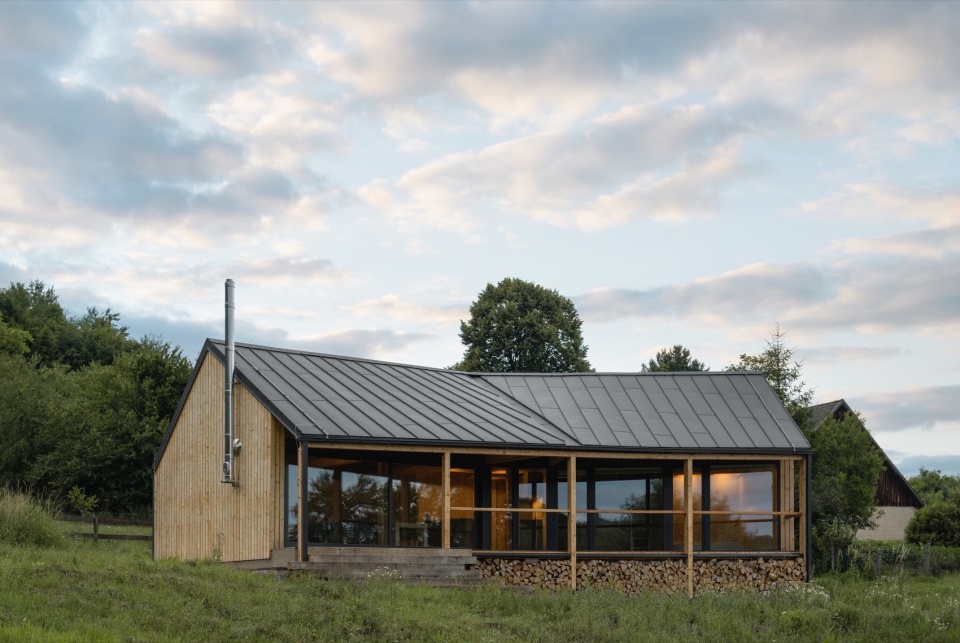 On the picturesque outskirts of Hrubá Skála, a modern weekend house has been built, designed to harmonize with the idyllic landscape of the Bohemian Paradise Protected Landscape Area. The design respects the historically rich environment and the natural beauty of the region while providing a peaceful retreat in connection with the surrounding landscape. The sophisticated design of this house harmoniously combines traditional and modern elements, meeting the high standards set for contemporary living.