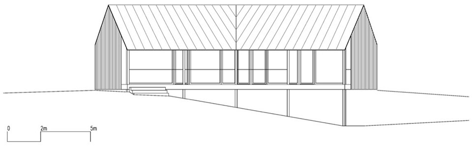 ▼建筑为单层结构,采用双坡屋顶,the single-storey structure features a gable roof