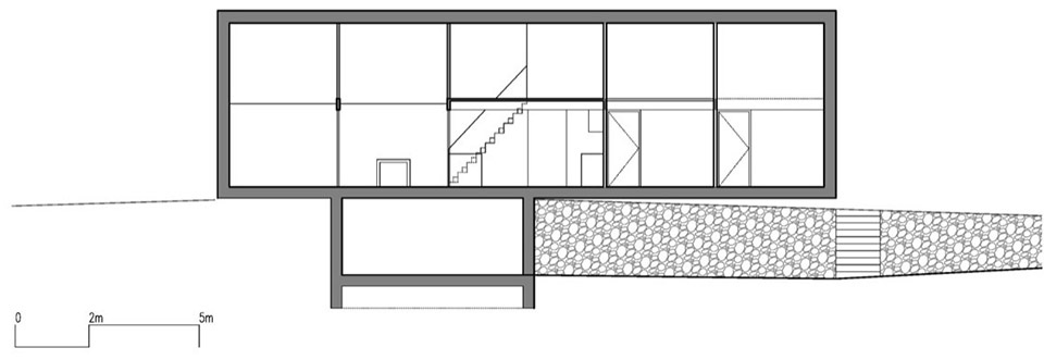The greatest challenge in addressing this project was undoubtedly the foundation construction. The house is situated on a slope that had been considered unbuildable for years due to its significant instability. It is founded on eighteen piles with a diameter of 800 mm and represents a technical marvel of its kind.