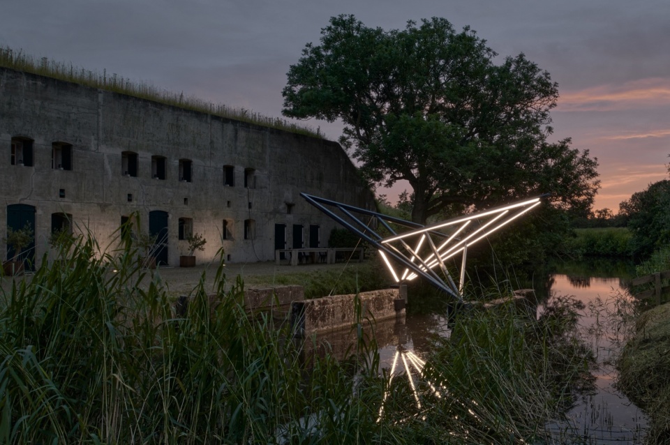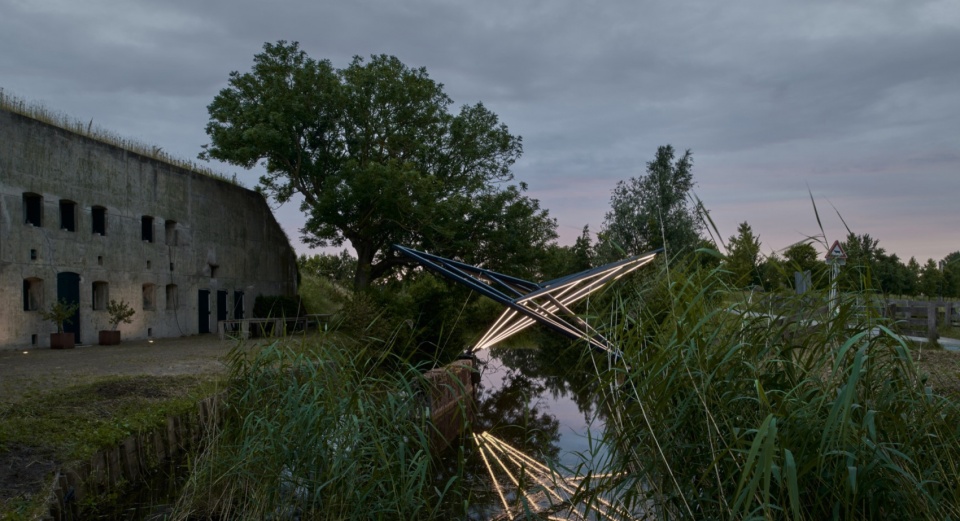 Syndesmos, derived from the Greek word for connection, is an evocative light installation gracing the moat of the UNESCO World Heritage site Fort van Hoofddorp. This permanent, luminous artwork eloquently symbolizes the bridge between the fort and its surroundings, as well as the link between the island’s rich history and its contemporary identity.