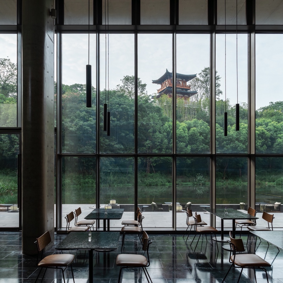 ▼从全日餐厅看向竺山,View from the all-day dining restaurant to the Zhushan mountain
