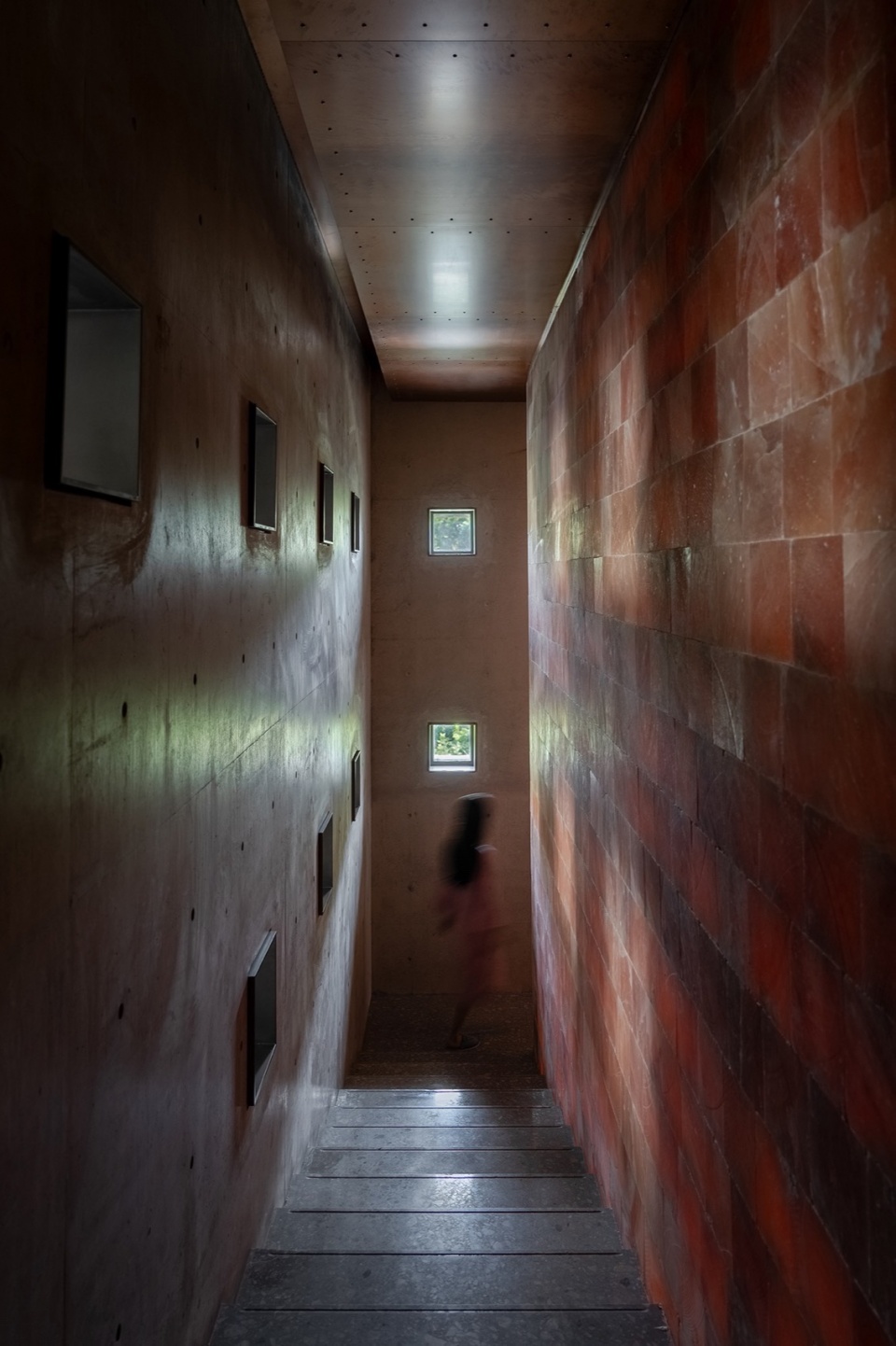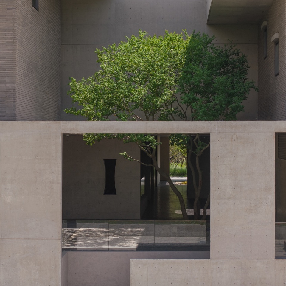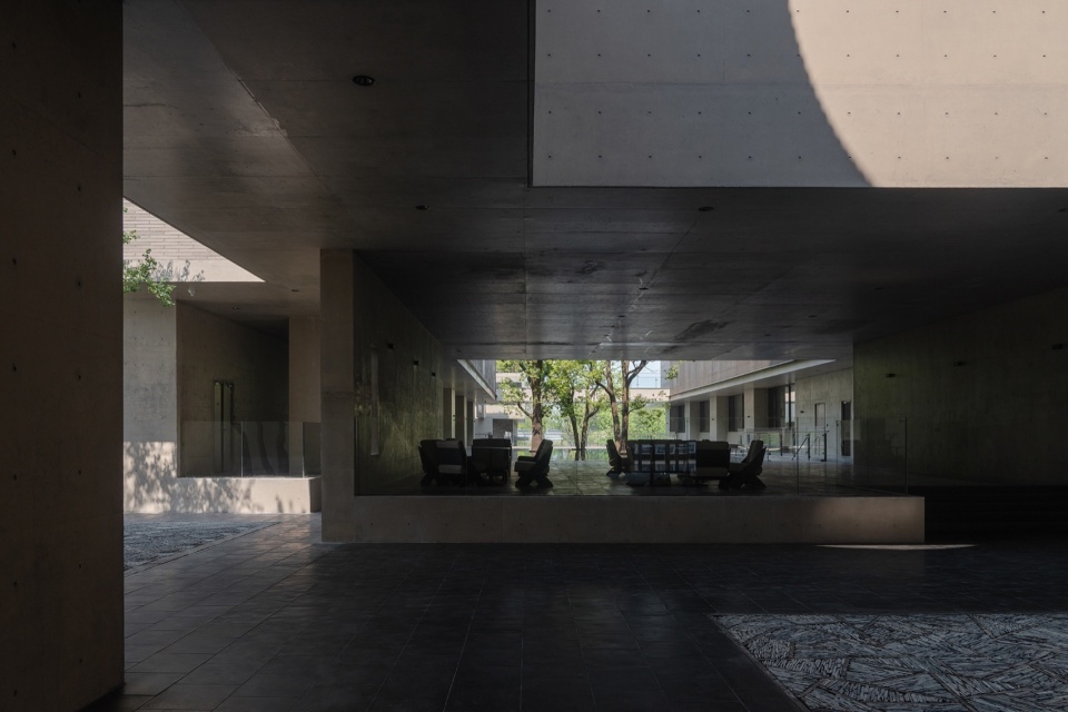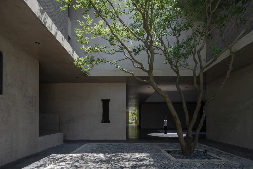 在我们的构想中,每一个院子就是一个“小的世界”——各自拥有不同的光、风、尺度、景和氛围。空间界面和自然光的明暗组织调动身体的游走,视野角度随之变换,在若干个“小的世界”之间创造出了一种复杂的关系,像是蒙太奇般的空间切换。日常光线被引入西侧的廊院,在地面层营造出多个近人尺度的花园。