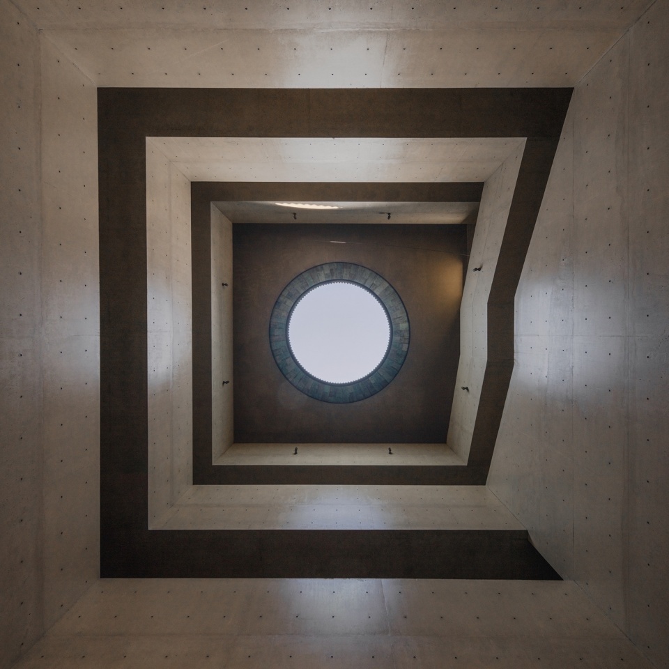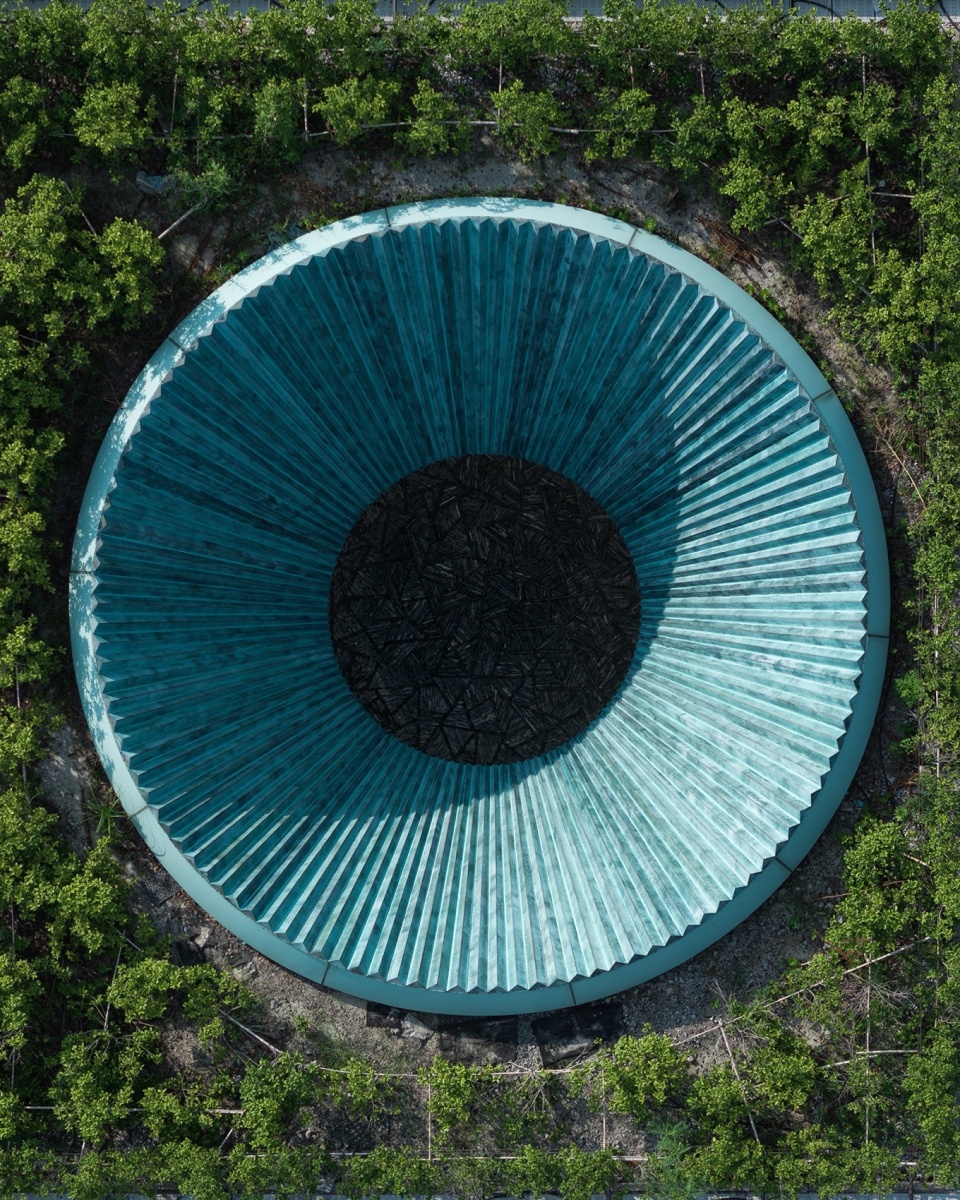 ▼青铜雨斗鸟瞰,Aerial view of the bronze raindrop funnel