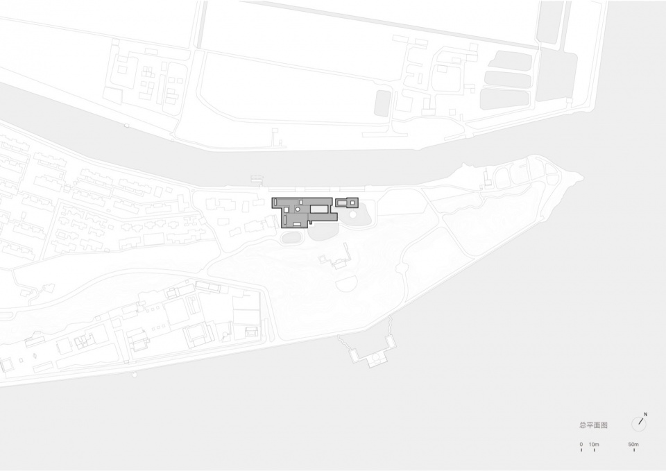 息壤酒店选址于一处连排的鱼塘,东侧是烟波浩渺的太湖,北侧紧邻沙塘港河,南侧依傍竺山,西侧与社区市集相接。面对这个具体且多样的环境肌理,我们尝试寻求一种适宜的空间机制,向外回应四个方向,向内组织空间,以唤起蕴含当地风土精神的空间经验。
