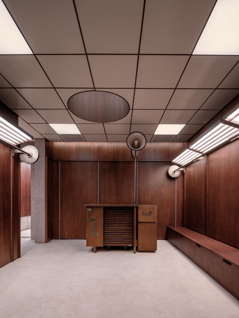 Upon entering the 1.5F, glass partitions blur the boundaries, expanding the view and enhancing spatial openness. A row of red folding seats evokes the imagery of an audience stand. Looking along the vertical space, this “stand” serves as a visual counterpart to the “1900s Sports Arena” on the first floor, forming an intriguing contrast and narrative interplay.