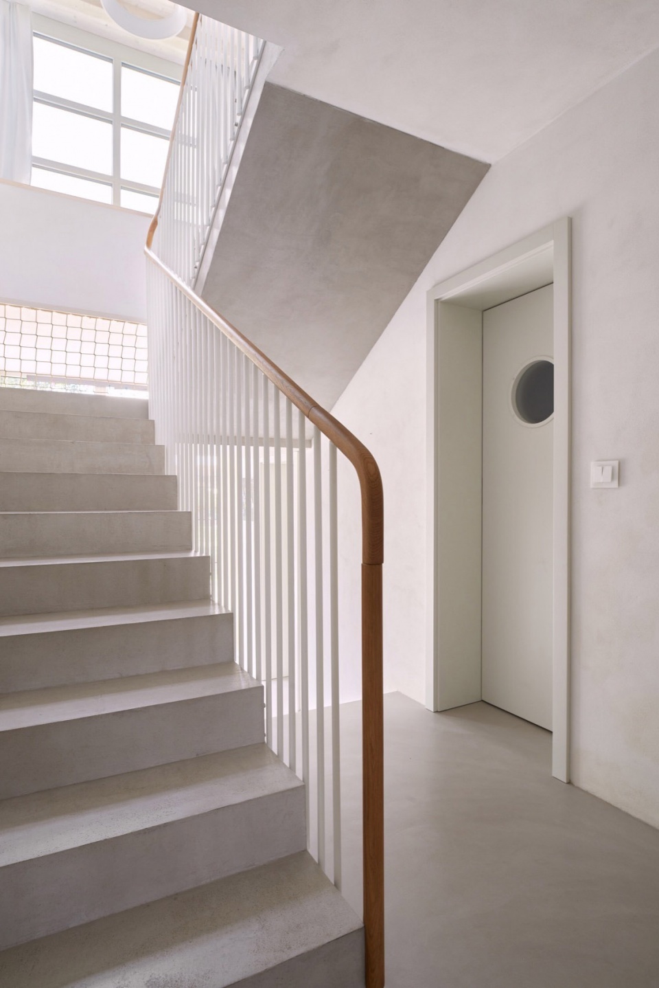 而在庭院一侧,策略完全相反——房屋尽可能地向外敞开。一个玻璃房被附加至建筑主体,并在一楼延续这一设计,使住宅在最大程度上与庭院建立联系。