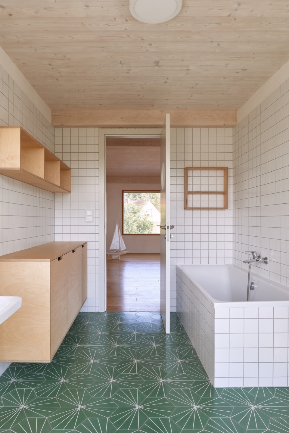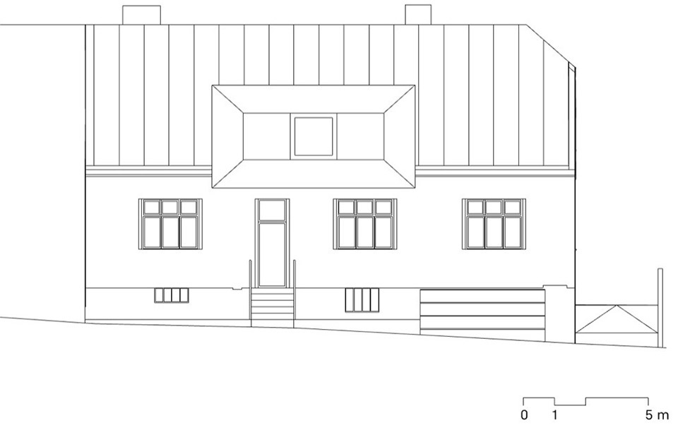 The house faces the street differently and the yard differently. It does not change or open much to the street. Although the house is being radically transformed operationally, we did not want to completely erase its original image and atmosphere, which certainly had qualities. We have kept the original massing legible, including the openings with replicas of the original windows. The dormer facing the street, which houses the playroom, creates a new landmark of the house.