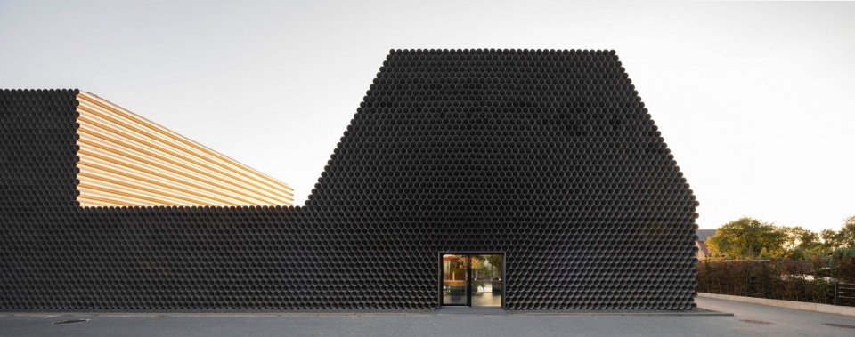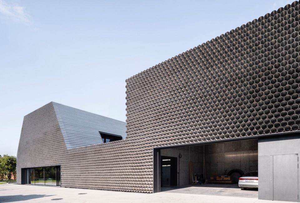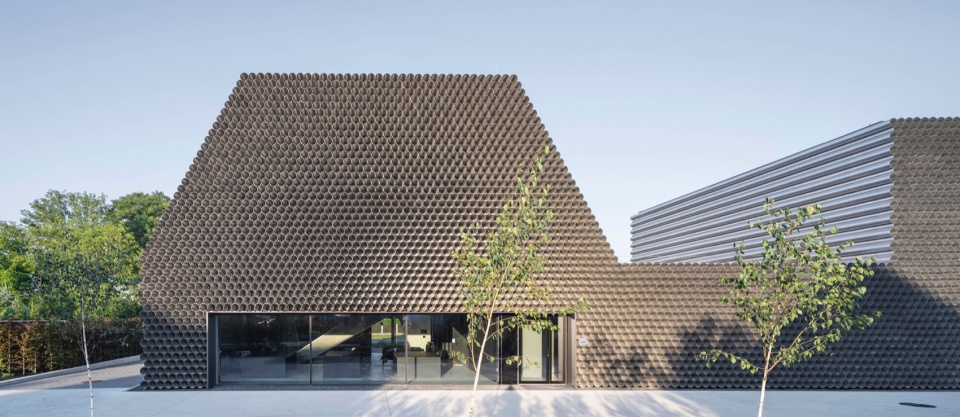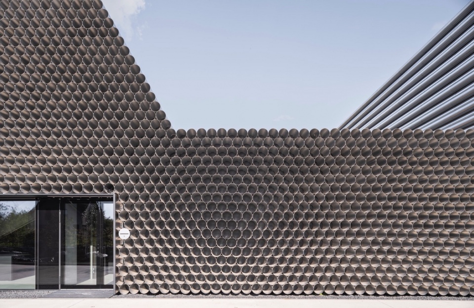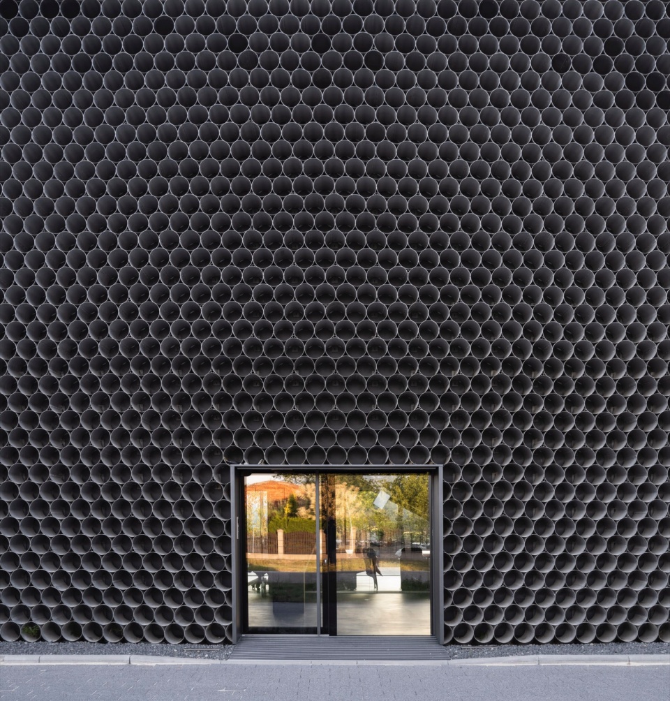 Gambit是一家专营管道分销的公司,委托建筑师设计一座集办公与仓储于一体的新总部建筑。项目既需体现企业特色,又被要求以尽可能低的成本完成。建筑师提出以Gambit主营的管道作为建筑材料,不仅能够以成本价获取,还能强化品牌识别。同时,他们希望办公与仓储构成统一整体,因此将建筑设计为一组“管道堆叠”的形式,清晰传达出企业的核心业务。