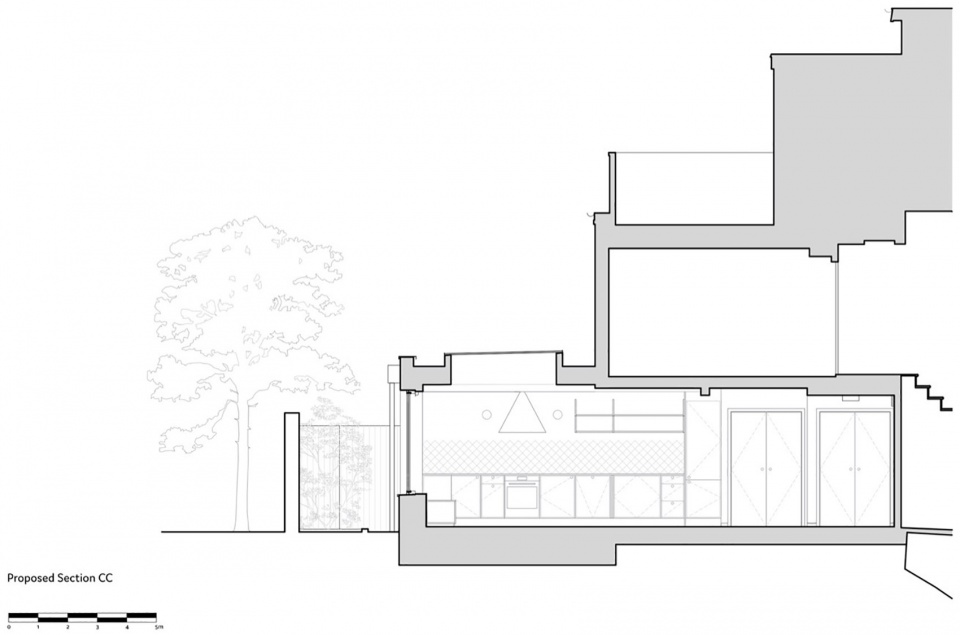 Office S&M Architects have remodelled and extended a Victorian terrace house, transforming it into a spacious and light-filled home tailored to meet the daily needs of two writers and their cats. The house looks onto a Grade II listed wall bordering Abney Park, a historic Victorian arboretum in Hackney. The redesign fosters a deeper connection with the trees and nature that surrounds the house while addressing structural and functional shortcomings of the original layout.