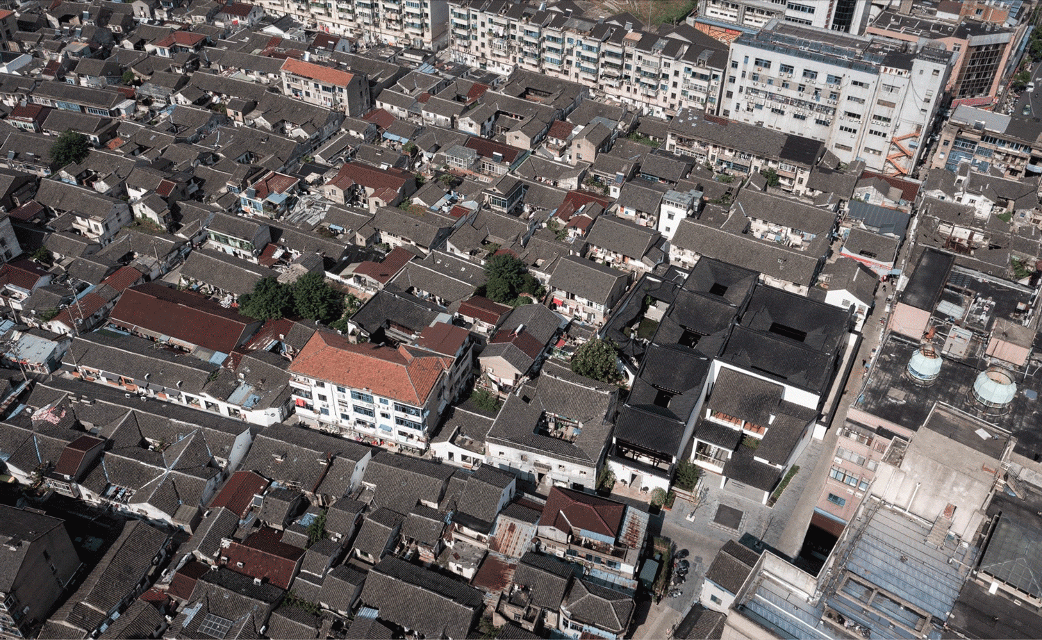 Bank Street is home to many former residences of celebrities, carrying the epitome of Shengze’s history at various stages. The district is known as the 72.5 alleys, with many alleys and some one-way dead-end roads. Although it does not meet the requirements of modern urban development, it has the characteristics and memories of a historical ancient city. The overall architecture is divided into celebrity residences with white walls and black tiles, traditional residences, and modern multi-storey brick-concrete buildings. Traditional residences are mostly 1-2-storey brick-wood structures. Due to their age, some are dangerous structures. The simple awnings and air-conditioning units built by residents in the alleys have aggravated the disorder of the street environment and affected the original style.