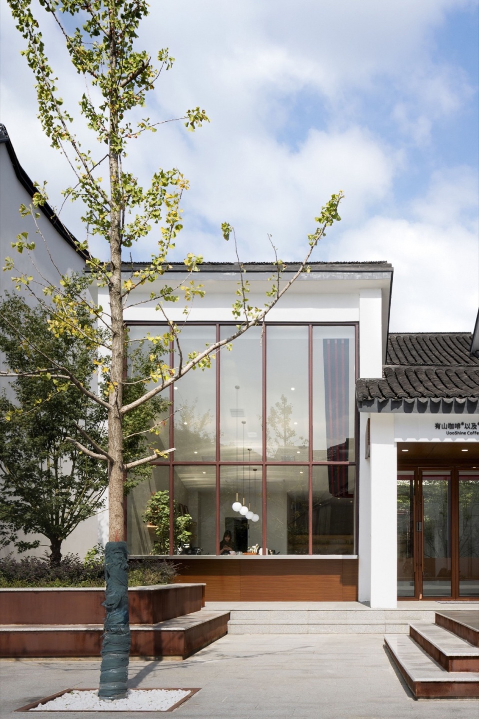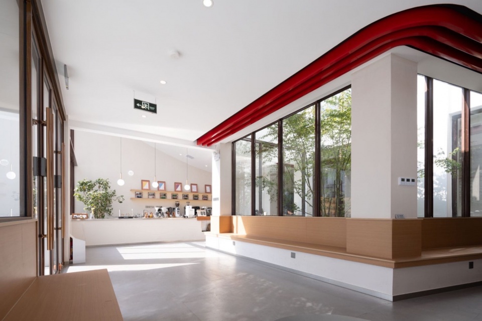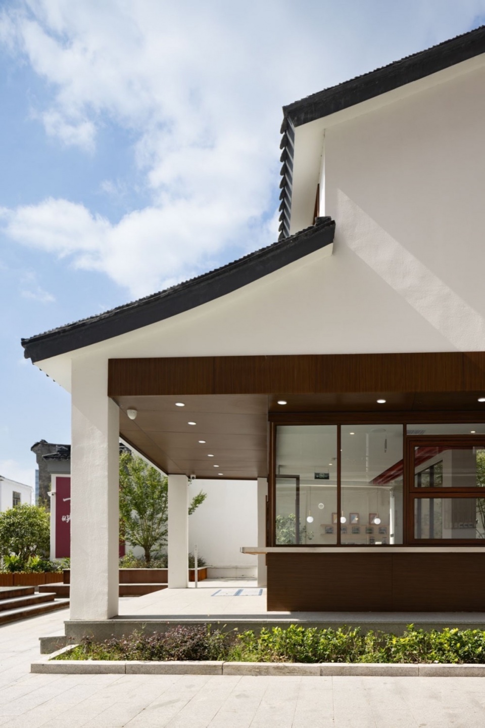 The Home Country Community is a new building on the site, adjacent to the reconstructed Cheng Kaijia’s former residence, the original site is part of the structure of the dangerous houses, after the demolition, as a new building monolithic and pocket park area. For the new building in the historical area, the design team has carefully considered the surrounding buildings and the environment, and the height is controlled in such a way that it does not affect the pedestrian’s view of Cheng Kaijia’s former residence, and the scope of the building base has been set back from the original demolished building, enlarging the corner of the street that was originally constricted, so that the non-motorized vehicles and pedestrians can pass through safely. The architectural style is the same as that of the neighborhood and the adjacent residence, but with a more modern massing and large glass windows to ensure that the commercial building is visible. The building has a café on the first floor and a small meeting room on the second floor, which provides a place to meet and exchange ideas for school trips to the neighborhood’s residences.
