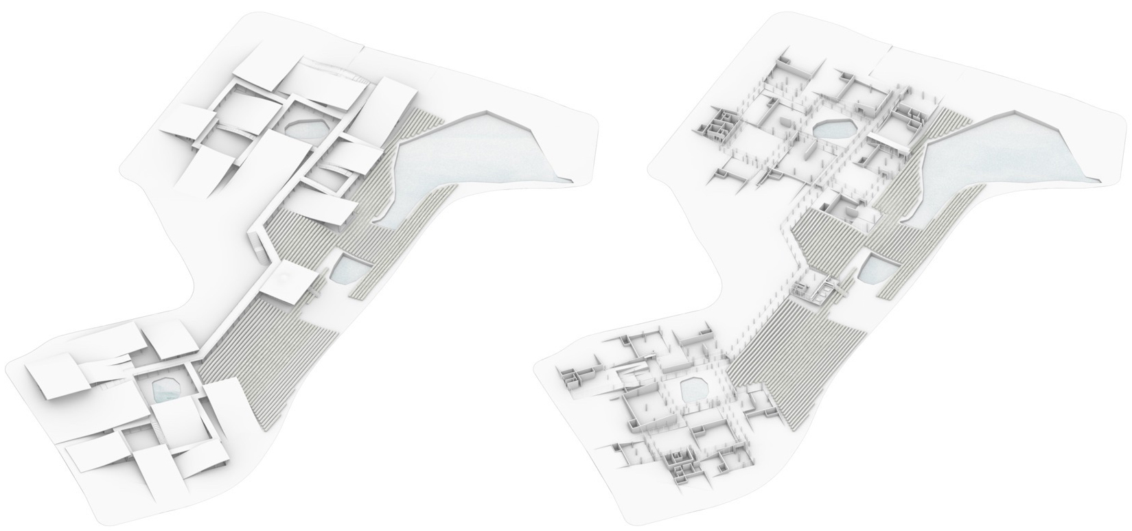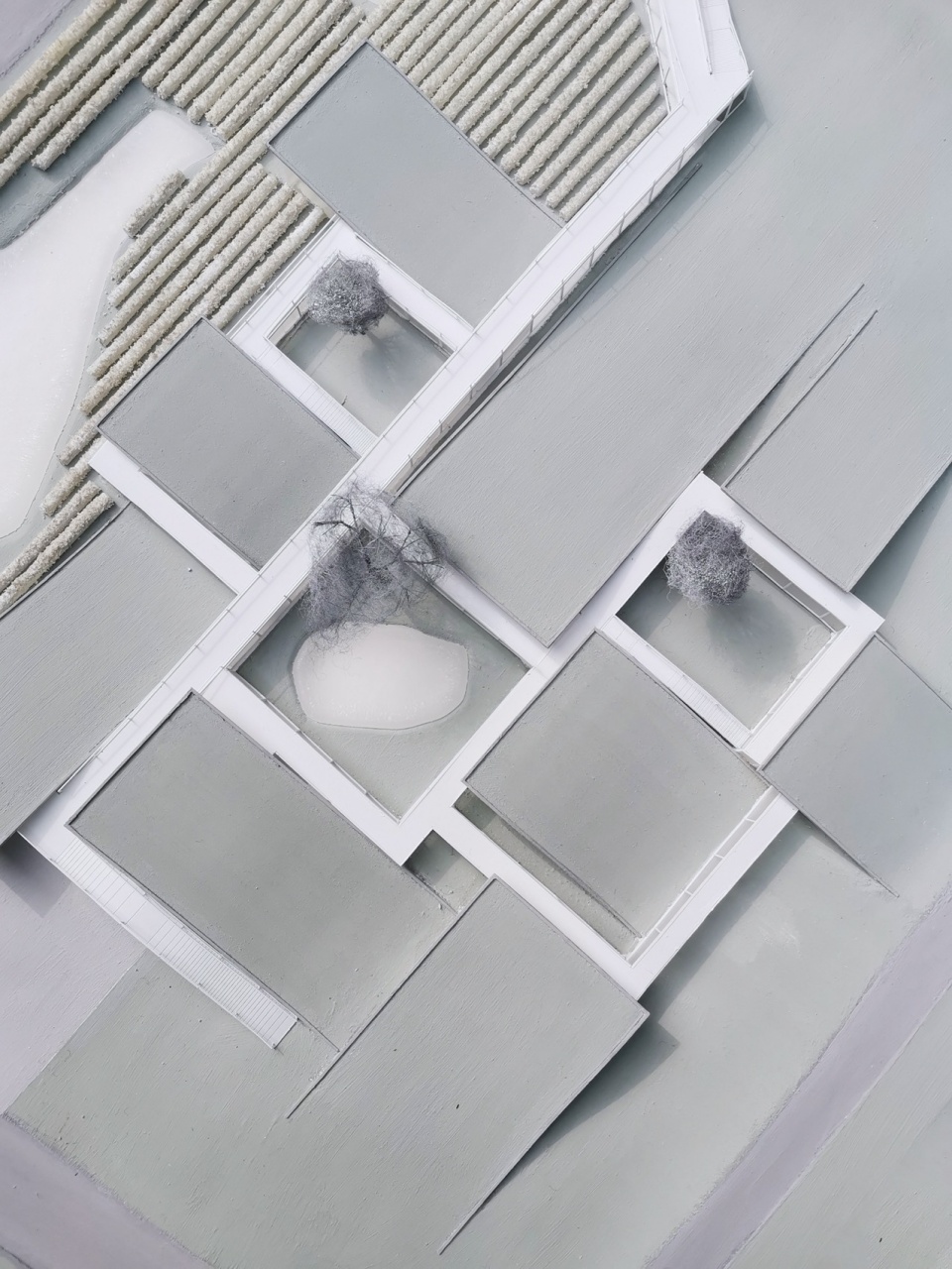 This landscape is not merely visual. While the design employs a traditional courtyard-and-corridor typology, it also renders the courtyards as walkable topographies. Whether the center is open or closed, visitors can roam freely along the upper surfaces of the courtyards and corridors, experiencing the architecture as if moving through the fields themselves.