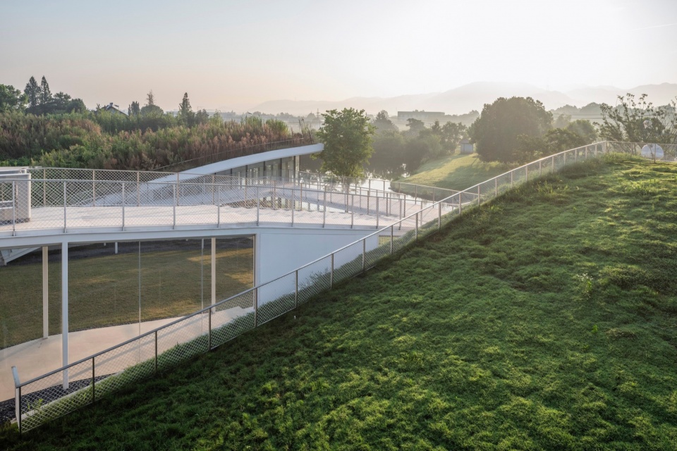 ▼建筑形态在平面上呈正交网格,在竖向上起伏蜿蜒,the architectural form is a regular intersecting grid on the plane and undulates and winds in the vertical direction