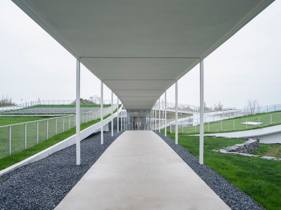 这种景观并非只是视觉性的,建筑在采用了传统的廊院布局的同时,也把廊院的空间地形化了,无论设计中心开门或者关闭,人们都可以在廊院的上部自由穿行,仿佛仍置身于田野之中。