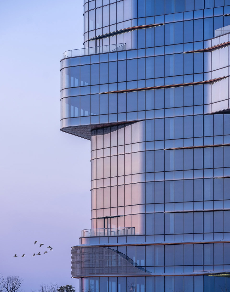 The project adopts the core philosophy of “Ecological Empowerment, Innovation Leadership, and Integration of Industry and Urban Development,” seamlessly blending coastal wetland ecosystems with innovative office functions. It creates a smart innovation complex that integrates R&D offices, enterprise incubation, and commercial amenities. The design not only responds to Yancheng’s strategic positioning as a “Science and Innovation Hub in the Northern Yangtze River Delta” but also redefines the development model for coastal innovation parks through innovative design strategies such as “vertical greening, flexible spaces, and low-carbon technologies.”Through signature design elements like the “Cloud Walkway,” “Wetland Living Room,” and “Light and Shadow Facade,” the project has become the “Innovation Living Room” of Yancheng’s Nanhai Innovation Belt, facing the future. These elements not only highlight the project’s architectural uniqueness but also demonstrate the exemplary significance of emerging coastal cities in achieving coordinated development between ecological civilization and technological innovation.