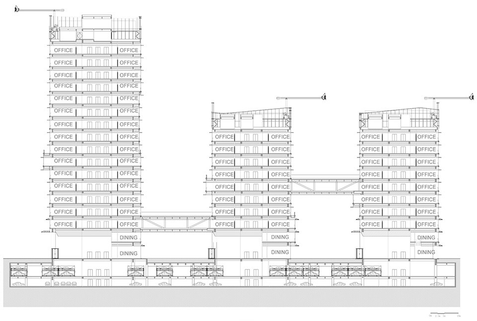Featuring a 30-meter span structure, the design enables flexible partitioning of office spaces, catering to the evolving needs of enterprises from startups to scaled businesses.