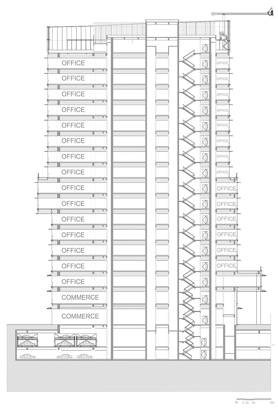 ▼从底层仰视塔楼,Looking up at the tower from the ground floor