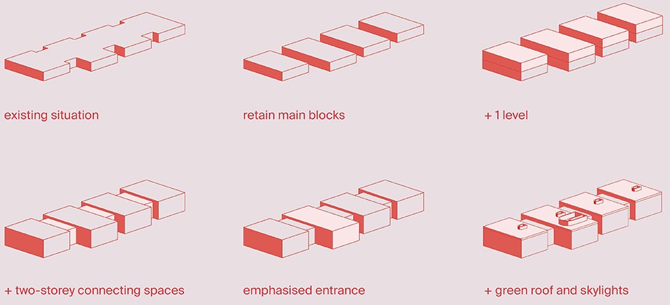 由于该建筑存在功能问题、室内空间狭小、缺乏公共空间和联通区域、交通系统不合理,以及亟需能源现代化与无障碍改造,第十三区政府决定对这座破旧建筑进行翻新和扩建。
