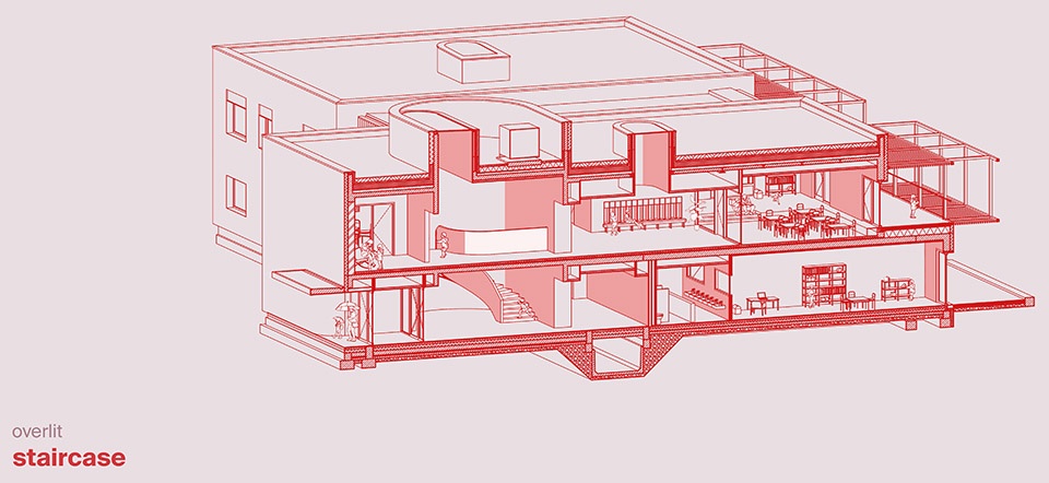 ▼中庭的旋转楼梯,spiral staircase at the center