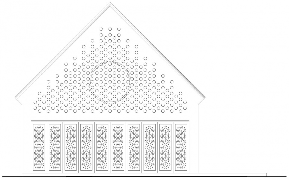 住宅继承了当地民居狭长体量与双坡屋顶的传统形式,借鉴了乡村农用建筑的设计语言。穿孔砌体——在附近历史建筑中用于引入光线与空气的做法——成为建筑的重要特征。这一元素不仅为南向山墙立面提供遮阳,也启发了其他立面上木质遮阳板的设计图案。紧凑的体量在各立面上镶嵌壁龛,呼应巴洛克建筑的形式语言,这些壁龛形成玄关与廊台,灵活调节遮阳与开敞。住宅可以完全向景观敞开,与外界连通,也可封闭内收,突出其冥想性质。