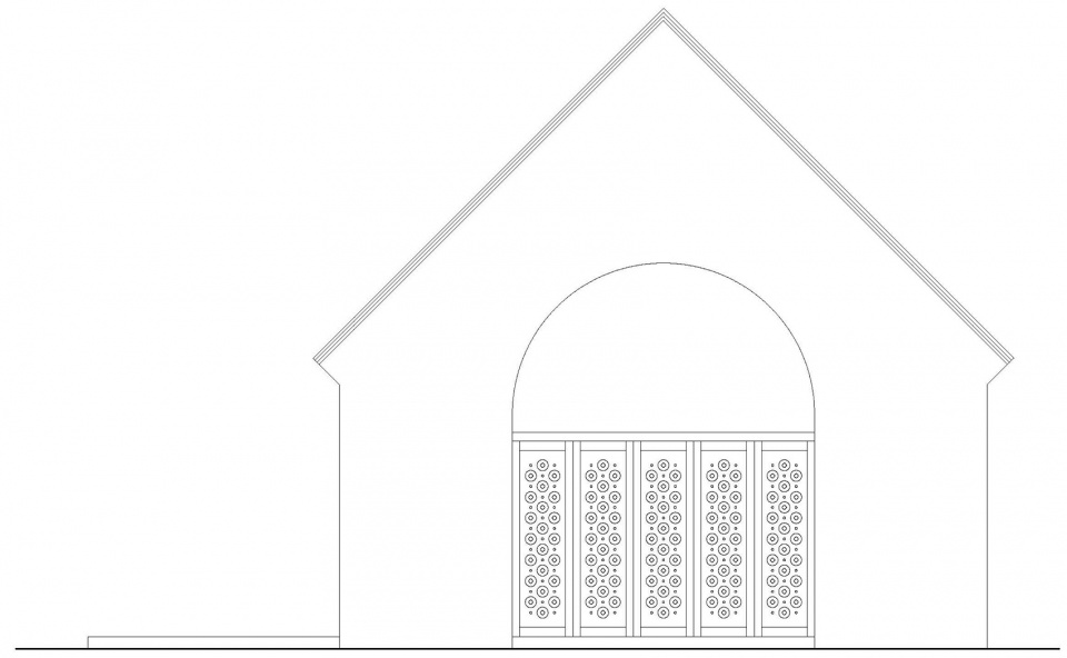 在传统的建筑形态下,室内空间展现出独特的原创性。与外部的白色立面形成对比,内部空间温暖而圆润。主空间设有高达七米的宽大拱形天花板,强调了空间的神圣感。白色抹灰墙面与大型铝框窗户进一步增强了空间的轻盈与空灵感。南侧山墙上的两米直径圆形窗洞,再次呼应了教堂建筑语言。