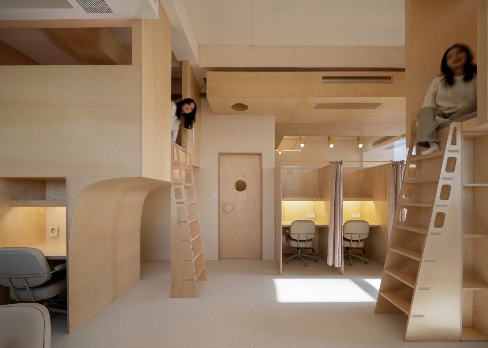 Suspended high above in an office tower in Nanjing’s Xinjiekou district, a spiritual vessel engages in quiet dialogue with the city. The moment you push open the glass door, the city’s roar is instantly stripped away, revealing an organic system woven from birch wood, fabric, and light. Atelier d’More reconstructs the learning space of the contemporary urbanite through an architectural lens, composing a symphony of spatial narrative and bodily perception in the sky, over a hundred meters above ground.