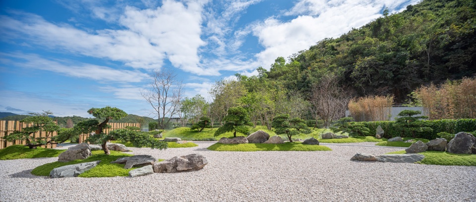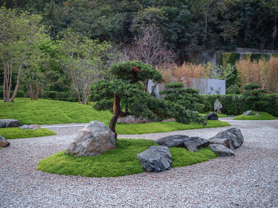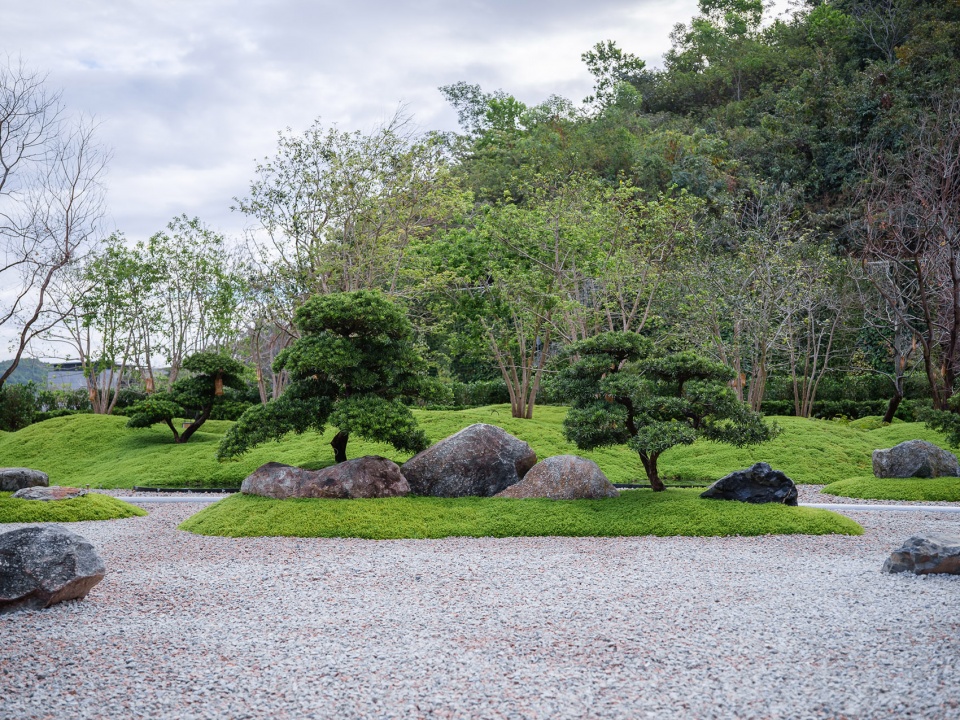 ” Jianshan Benyuan ” is a spiritual retreat where guests come to seek themselves, unwind, and lose themselves in contemplation.Though the site is compact, it carries enough depth and resonance to cradle the emotions of its visitors. Gravel symbolizes the vast sea, scattered green islands represent the nine continents, and sculpted podocarpus trees evoke the image of billowing sails.