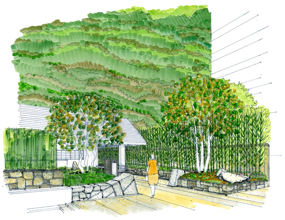 North Garden – Ninefold Mountains (Buddhist cosmology: the concentric mountain ranges surrounding Mount Meru)