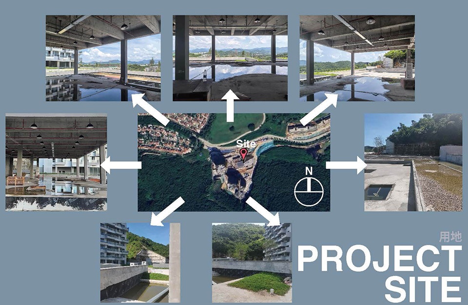 The project site is located to the east of Sanya Phoenix International Airport, at a distance of only 15km. The northern side offers open views, overlooking the architectural complex of the Aranya community and distant mountain scenery. The southern side, however, has relatively limited visibility due to obstruction by the mountain body and retaining walls, as well as shading from the apartment and hotel buildings on the western and southern sides.