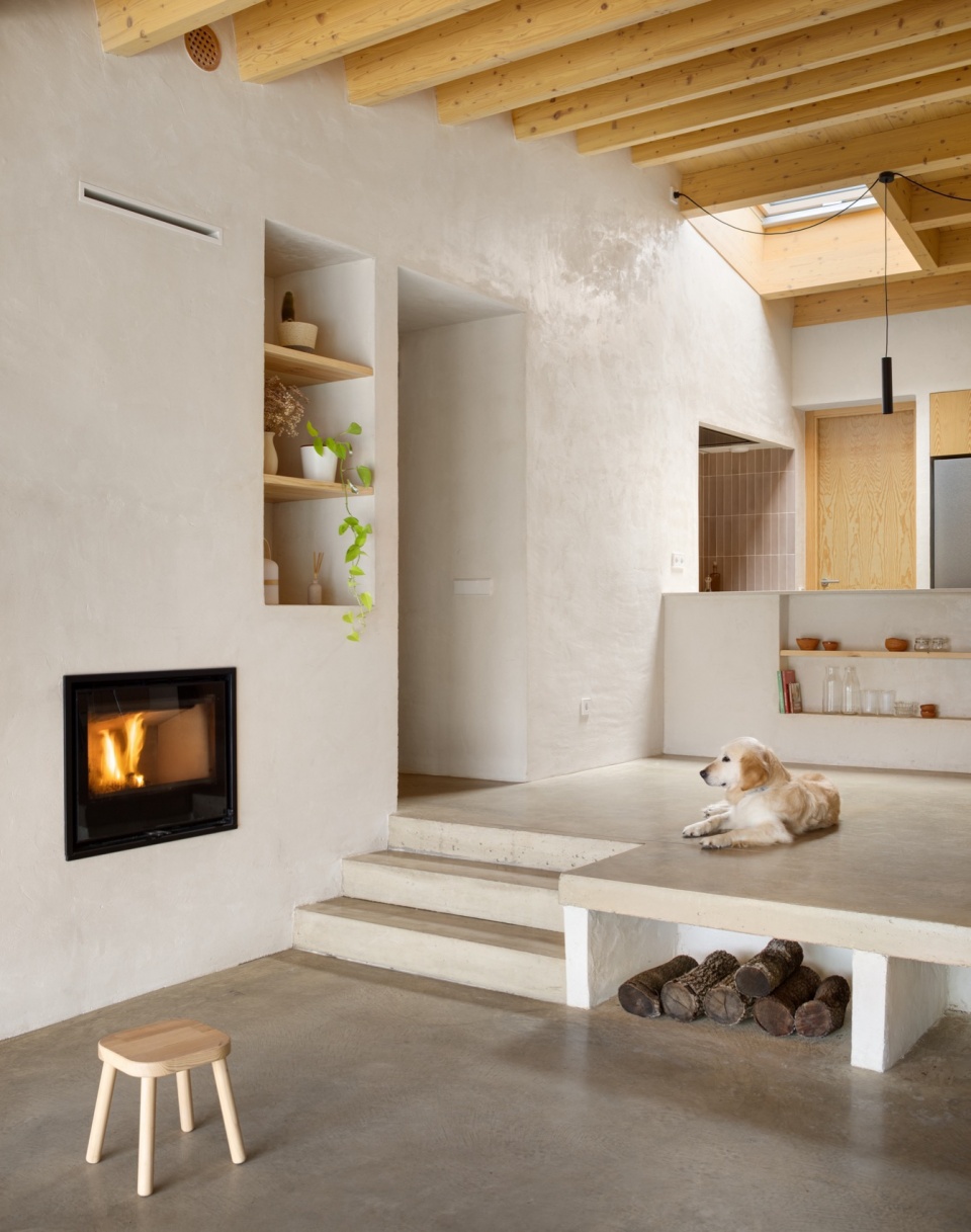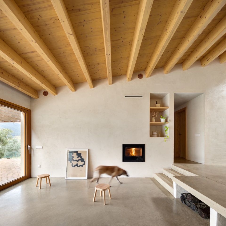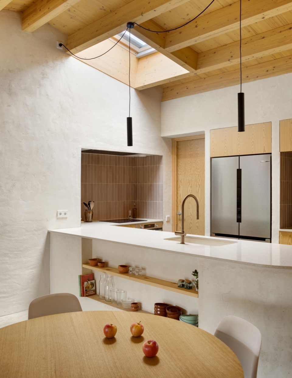 The house is highly insulated and uses a heating and hot water production system through aerothermal energy, approaching passive house standards and achieving very low energy consumption. The compact shape of the volume maximizes the building’s energy efficiency.