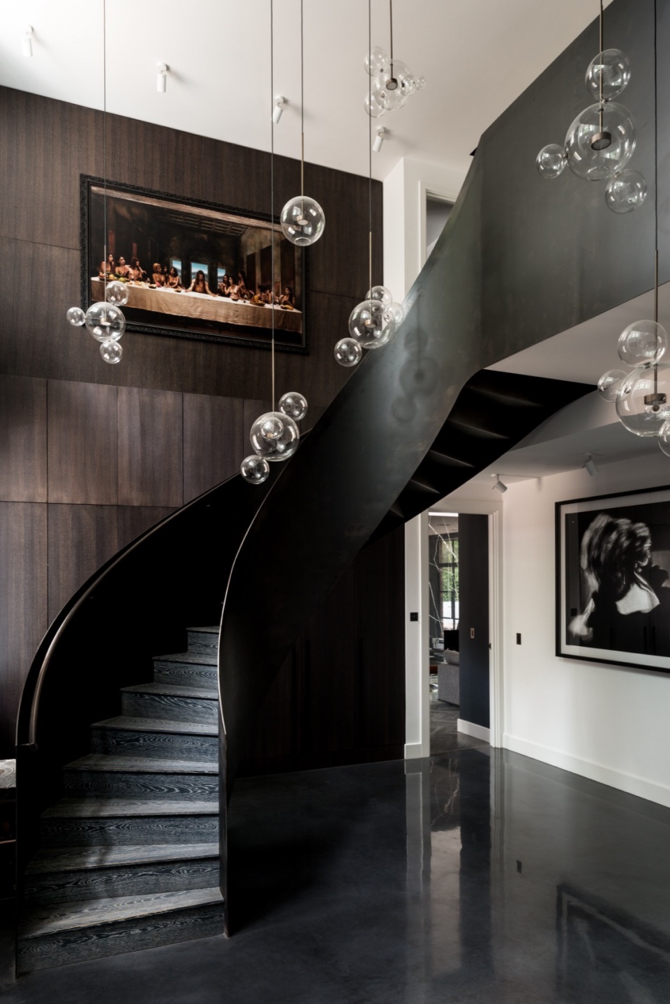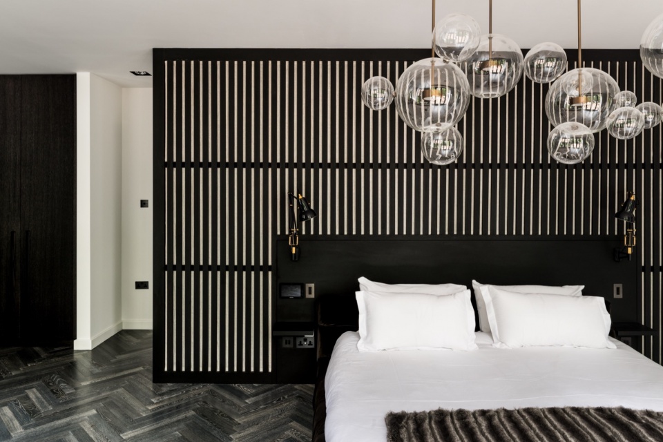 这座位于NW3核心地段的住宅,不仅完美履行了为大家庭提供私密而奢华居所的职责,更超越了期待。建筑面积达750平方米,宽敞的室内空间经过精心细致的设计,采用豪华的黑白单色系饰面与家具,同时留出空间,让屋主在整体布局中展现个人风格。整栋建筑共四层(包括地下室),设有宽敞的起居区和卫浴空间,同时配备酒窖、专属娱乐区,以及一座极具戏剧性的螺旋楼梯。庭院也被设计为额外的休憩与娱乐空间——瑜伽道场(Yoga Dojo)。