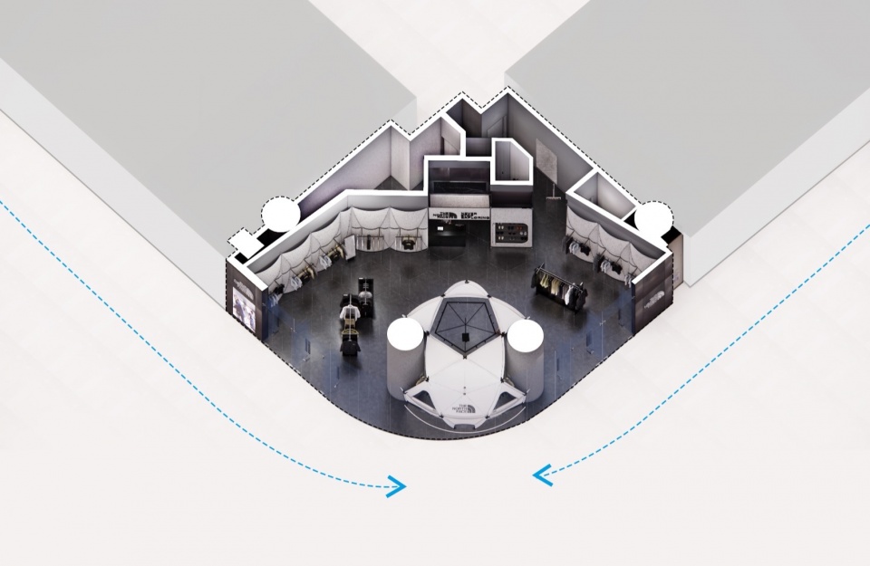 The North Face Urban Exploration is a special sub-line of TNF, designed for urban functionality and style. It aims to integrate the functionality and practicality accumulated from outdoor experiences into everyday city life. The core objective of this project is to create a space that fully embodies the spirit of TNF UE’s outdoor exploration and design philosophy.