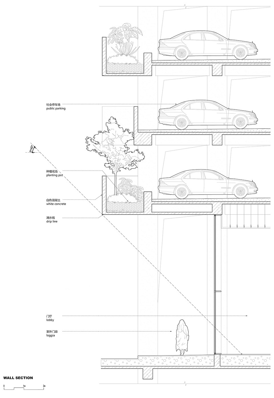 ▼通过内外错动的变化来实现不同尺度的植被的生长需求,staggered planters supporting diverse vegetation