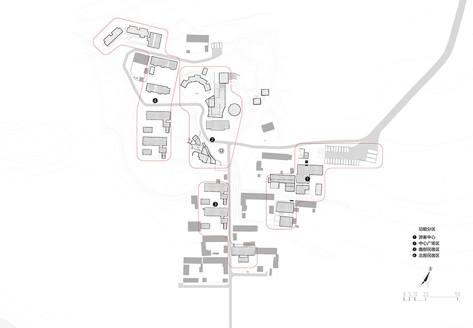 Respecting the spatial structure of the original village, the function is mainly divided into 4 parts:
