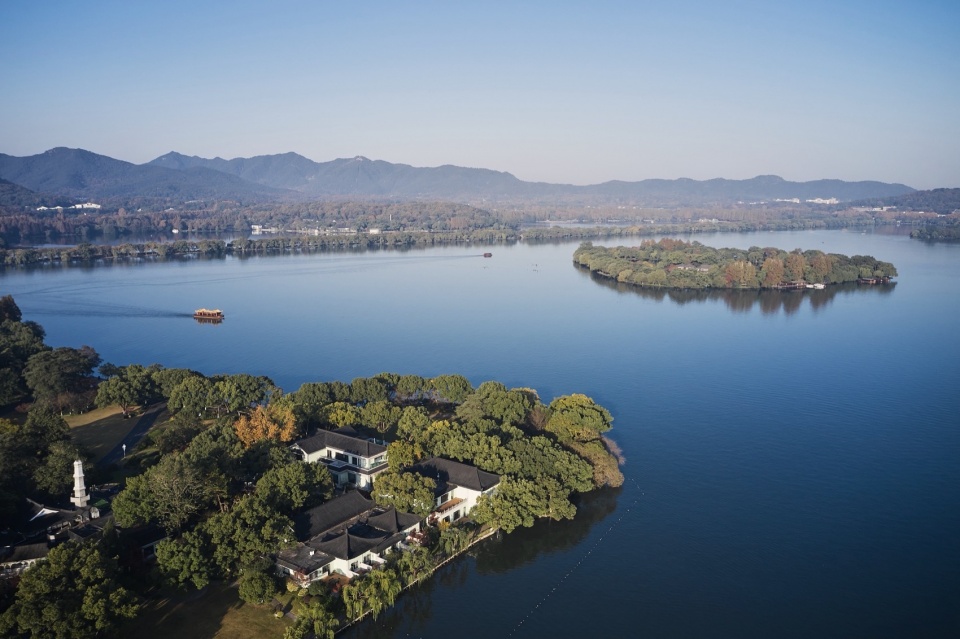 浙江西子宾馆又名汪庄,原系汪裕泰茶庄,始建于1927年。作为西湖四大名园之一的历史圣地,其坐落于雷峰塔下,占地约290亩,三面濒湖,湖岸线长达1500余米。在这里,设计承袭汪氏”西湖月会”的文人传统,将昔年的琴茶艺事,转译为当代的”东方美学”。赏湖品茗、行舟问茶,时间在此因无用而深刻。