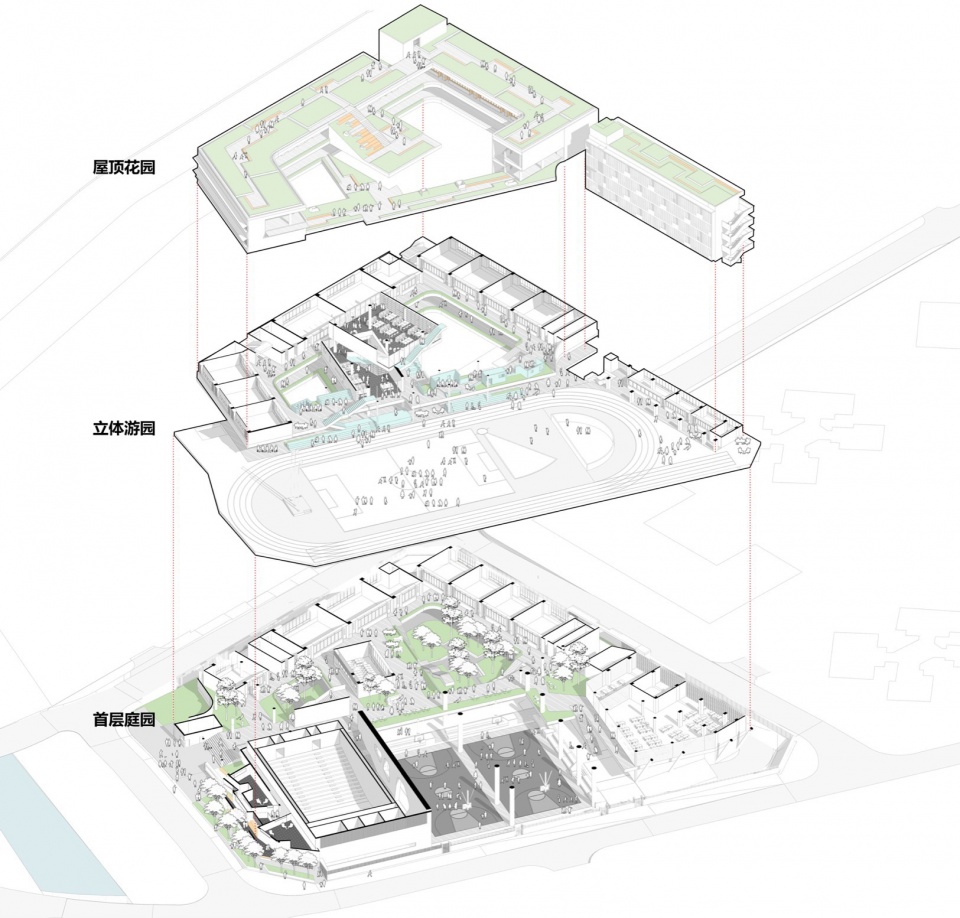 ▼立体游园与屋顶花园, Multi-level Courtyards and Rooftop Garden