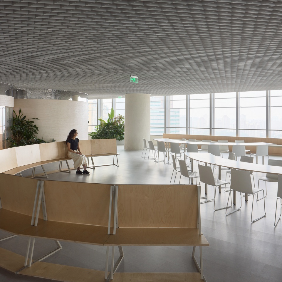 The second phase of the asset management company occupies an entire floor of a super high-rise building in Lujiazui of Shanghai, serving as a supplement and extension of its first-phase space (see Winding Frames of Light Office).