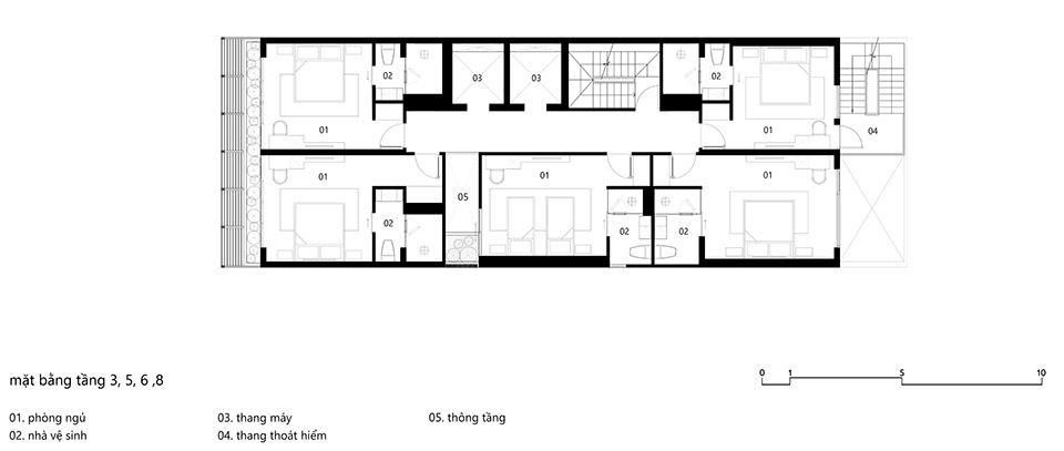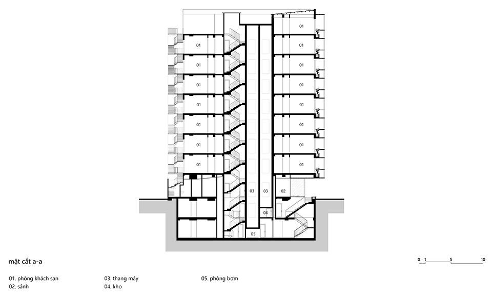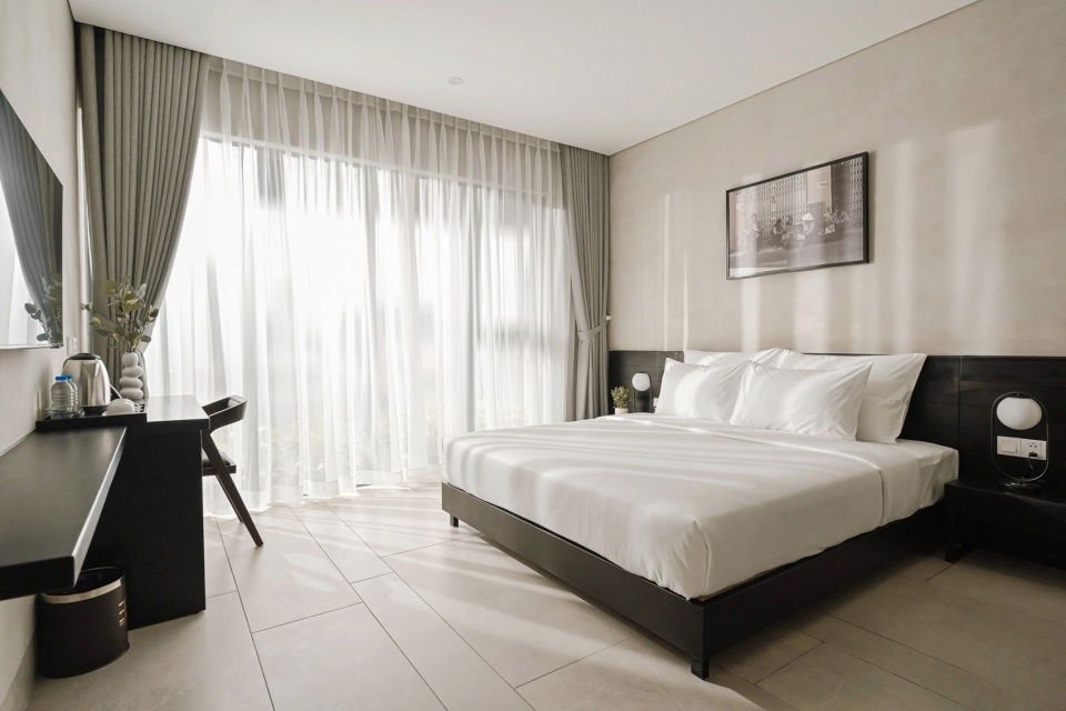 Located in the heart of Ho Chi Minh City—a vibrant area undergoing rapid development and home to many small-scale hotels of various architectural styles—Triple E Hotel consists of two nine-storey buildings with two basements, offering a total of 80 rooms.