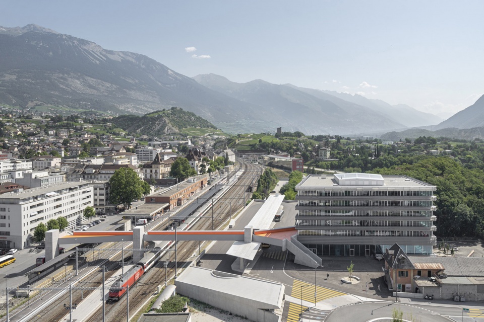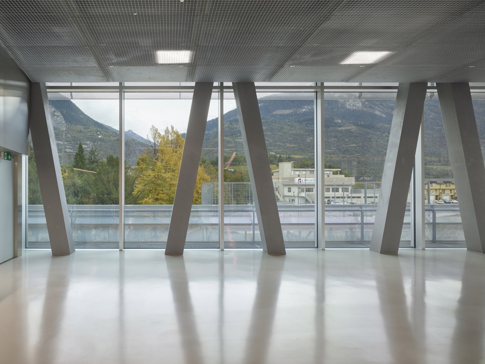 这座新的商业与通识教育学校位于瑞士联邦铁路(SBB)铁路线以南,与交通基础设施一道标志着Sierre城市向铁路线以外区域的扩展。在继社会工作学院落成之后,Bellevue平原上迎来了第二座教育设施。