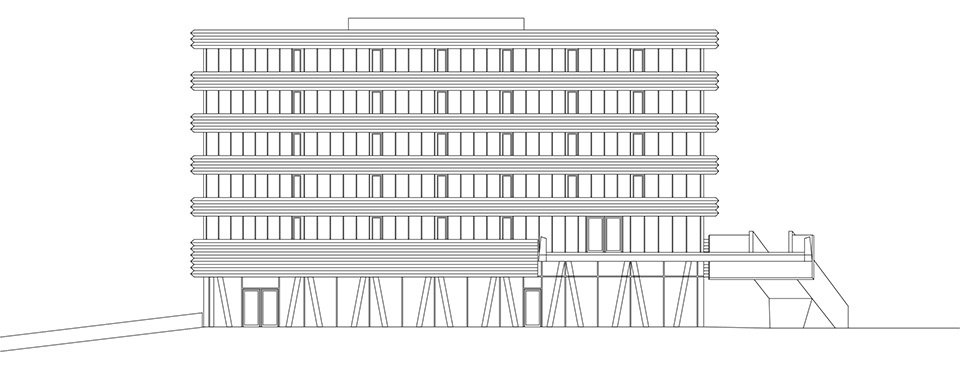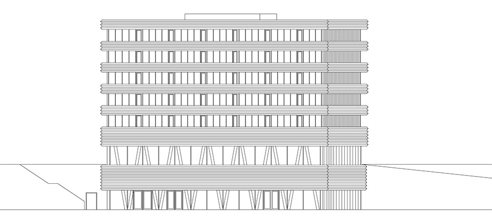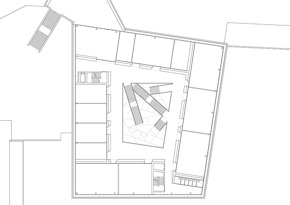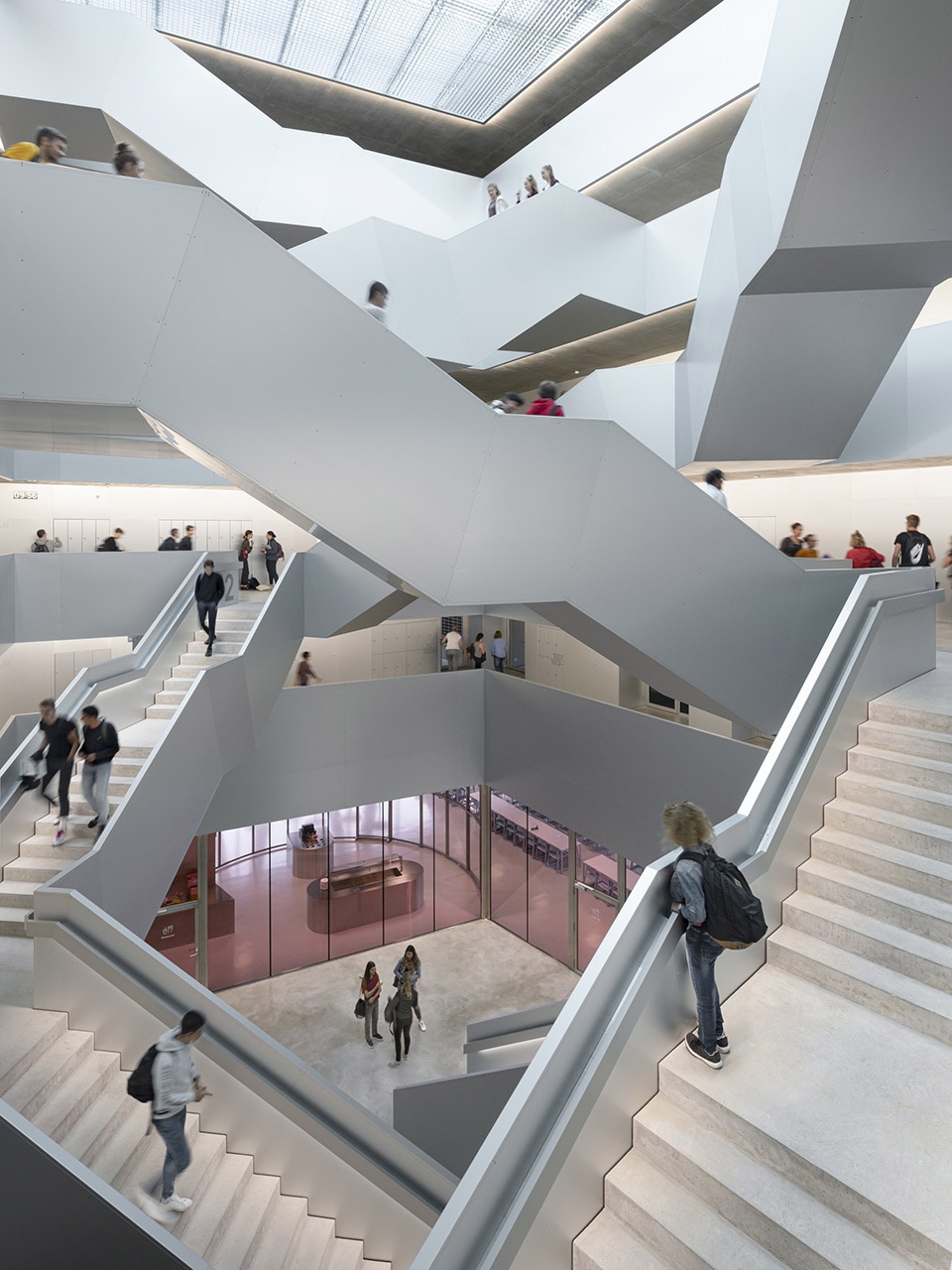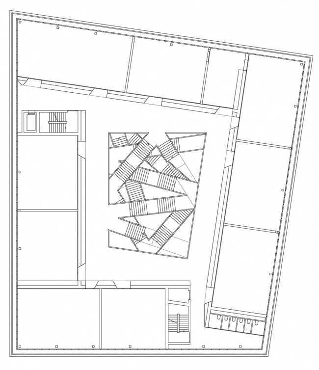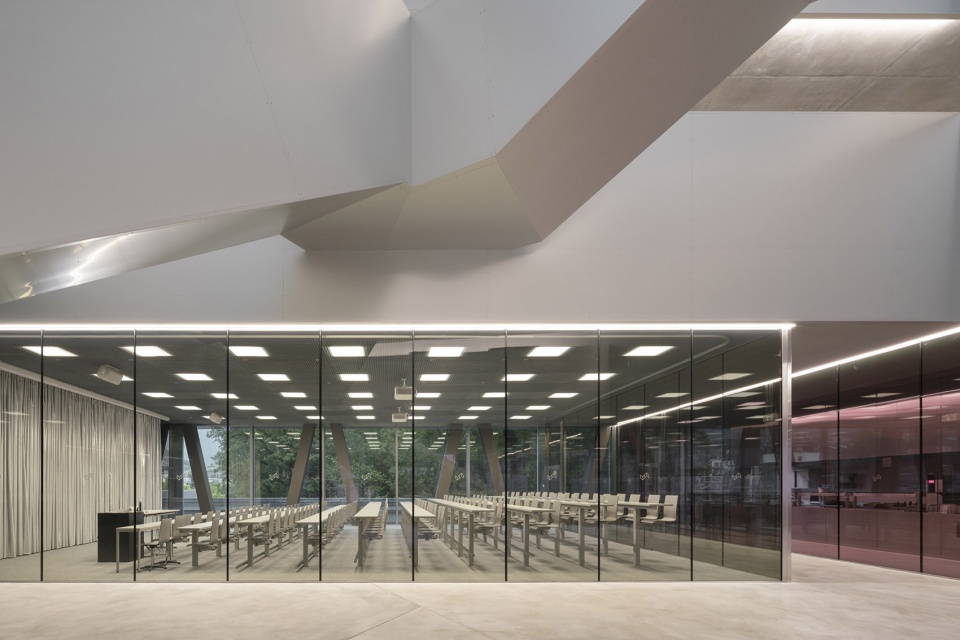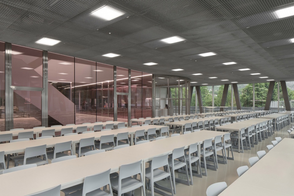 一层设置了包括食堂和两个大讲堂在内的公共功能空间,这些空间与HES-SO大学共享,大学还同时使用建筑的上层区域。