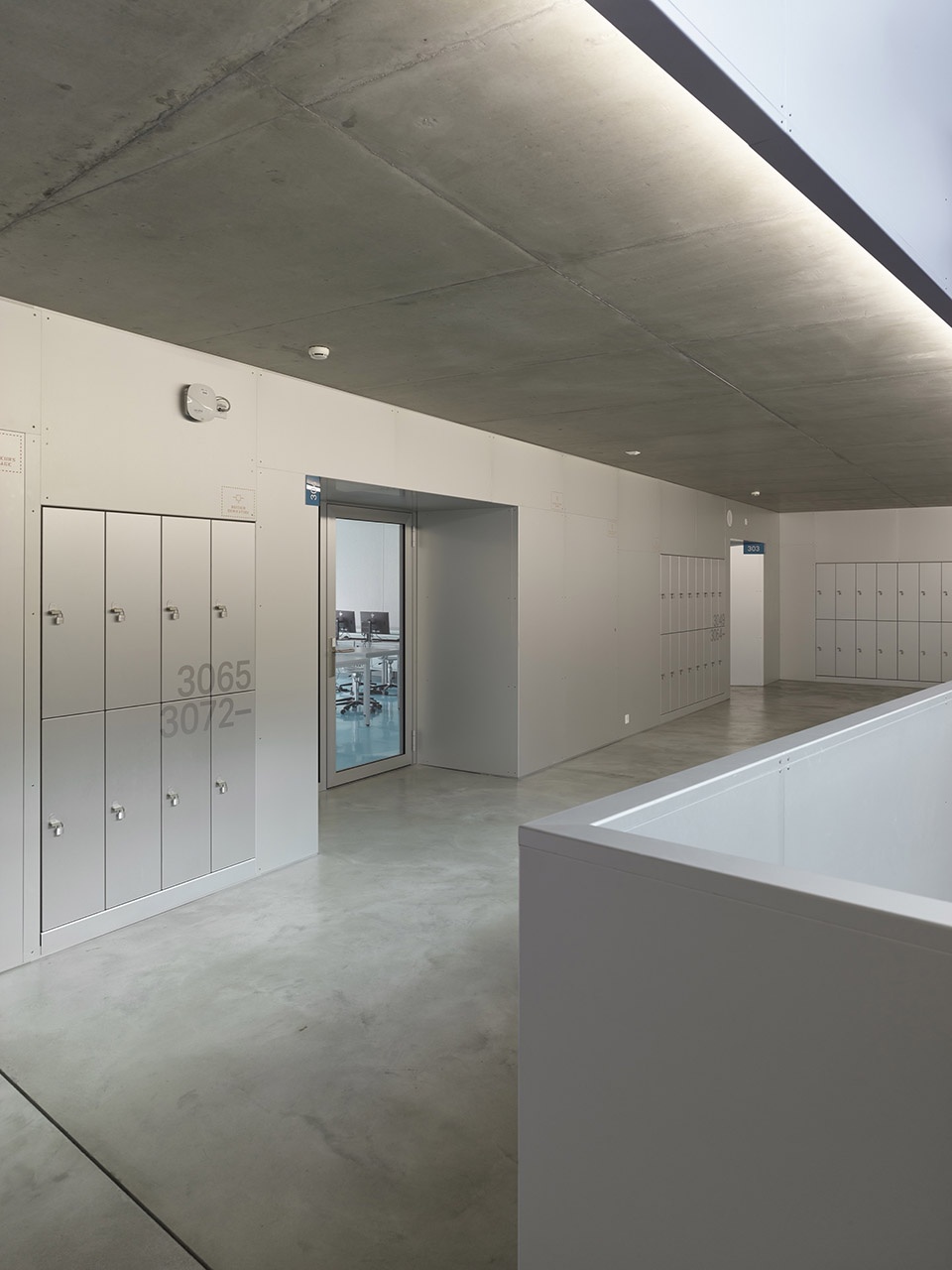 ▼走廊上的储物空间,lockers along the corridor