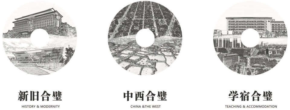 国际校区规划以“合璧”理念为核心,系统地结合建设背景、教育理念以及由此产生的需求拓展,探索如何塑造一所“无界大学”。设计紧扣“中西合璧、新旧合璧、学宿合璧”的主旨,洋为中用、古为今用,以创新思维建构既彰显岭南特色又契合时代精神的国际化一流校区。