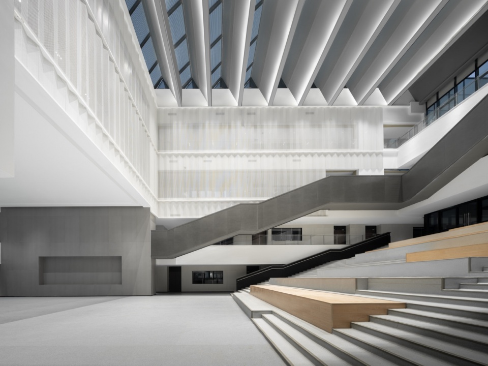 On the north-south axis of the GZIC Campus, the design sequentially arranges the plaza of the front area, the ceremonial plaza, the library, the waterfront landscape belt, and the activity center, etc., so as to establish a spatial rhythm of freedom. At the same time, the original water body is borrowed from the site, and the meandering water system from west to east is reproduced in the hinterland of the campus. The north-south central axis and the east-west waterfront landscape belt form an intertwined cross axis, which establishes the spatial inheritance and correlation of the cross axes in the Wushan Campus, including the ribbon water landscape axis of the East and the West Lake, and the core building axis of the north-south campus.