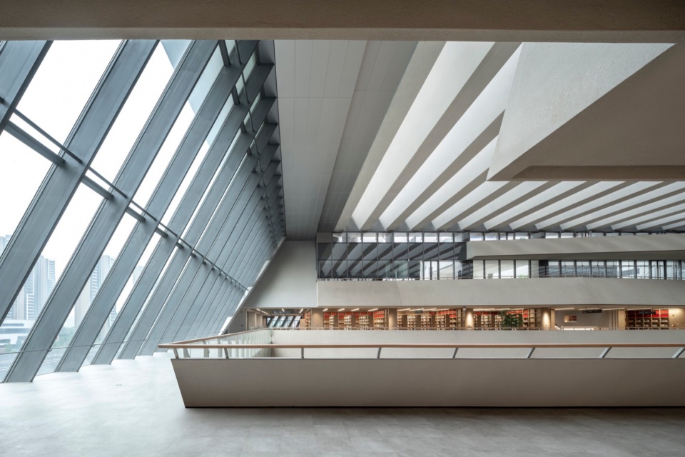 The masterplan precisely fits the regional climatic characteristics of Lingnan district, and builds a systematic green campus system: the regionalized cold-alley ventilation system with “comb layout” organizes more effective natural ventilation; the rainwater sponge corridor extending north and south through the ribbon water system collects all kinds of surface runoff and directs it to the urban pipeline; the folded landscape belt and sky corridor within the campus block form a coherent three-dimensional pedestrian system, supplemented by electric buses, bicycles, etc., to realize a green traffic system for the campus; the plan also includes a green traffic system for the campus. The campus blocks are composed of a coherent three-dimensional pedestrian system with zigzag landscape zones, space corridors and pedestrian bypasses, supplemented by electric buses and bicycles to realize a green transport system; the campus buildings have achieved the two-star green building evaluation standard, and the library has achieved the three-star green building evaluation standard.