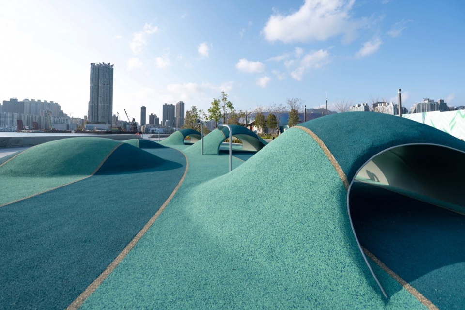 Subtle references to Kai Tak’s aviation history appear in elements like the shelters and restrooms, offering quiet reminders of the site’s past without overwhelming the contemporary design. These touches add depth to the space while remaining functionally appropriate.