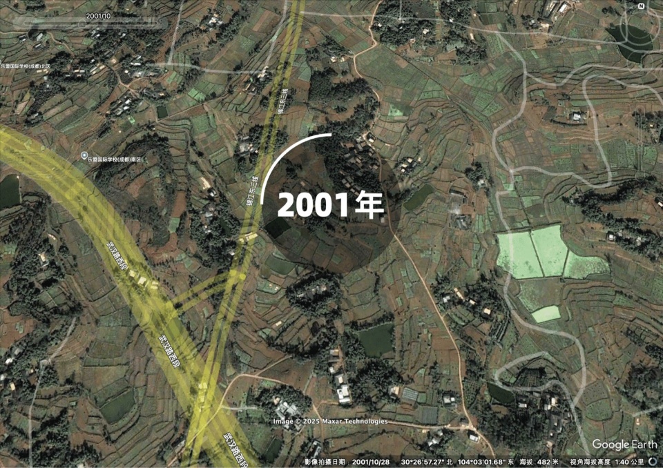 Viewed from satellite imagery, this area has undergone over a decade of natural transformation—from once-abandoned farmland into a landscape of gentle hills. Dense vegetation now envelops the site like a natural barrier, preserving its primal ecological character amid the city’s expansion. Due to its secluded forested environment, the area remains largely unexplored by the public.