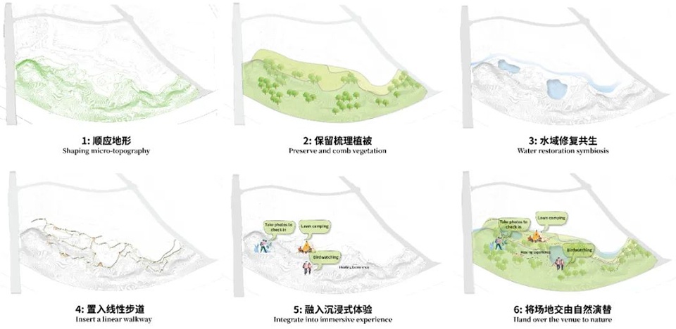 Every intervention in the site, from the restoration of the ecological water system to the enhancement of habitat connectivity, is centered around maintaining the sustainability of its wild nature. The site memory of Luxelake Greenfield Park may include plant lists recorded by children, migration logs of birdwatchers, the sounds of wind and birds through the changing seasons, or the scenic views along the mountain trail. These unintentional traces of life embody the rare “wild experience” in the city.
