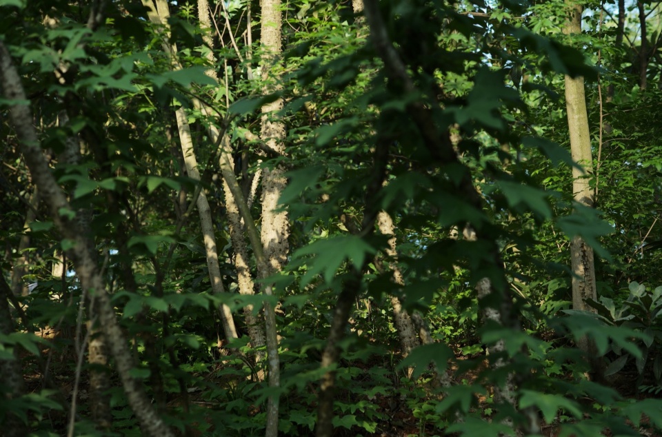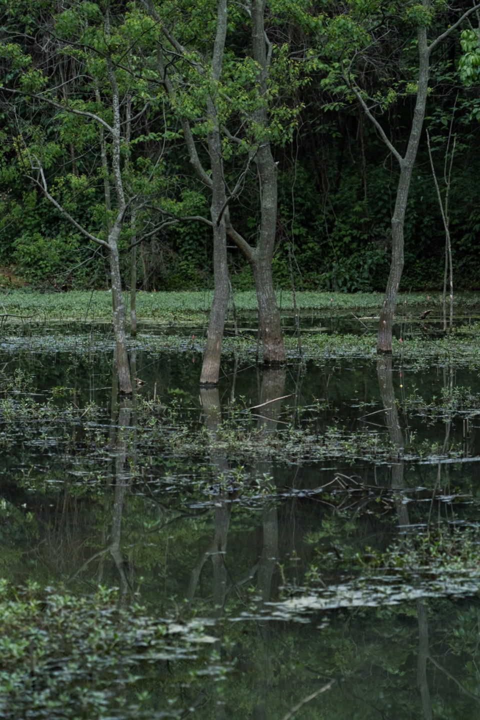 At the foot of the mountain, two quiet ponds left a lasting impression on us. While small, they reveal a unique landscape of water and forest intertwined through the passage of time. Dense, sturdy camphor trees and Chinese tallow trees line the banks and grow within the water, with crystal-clear water revealing the boundary of the mountain’s edge. The ponds teem with life, from waterfowl to fish.